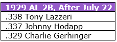 This does not suggest Hodapp was suddenly the same all-around caliber as Lazzeri and Gehringer. Johnny still had a lot to learn about playing second base. Defensively, he was very poor on his double play pivot, though he had shown good range and promise to get better.
